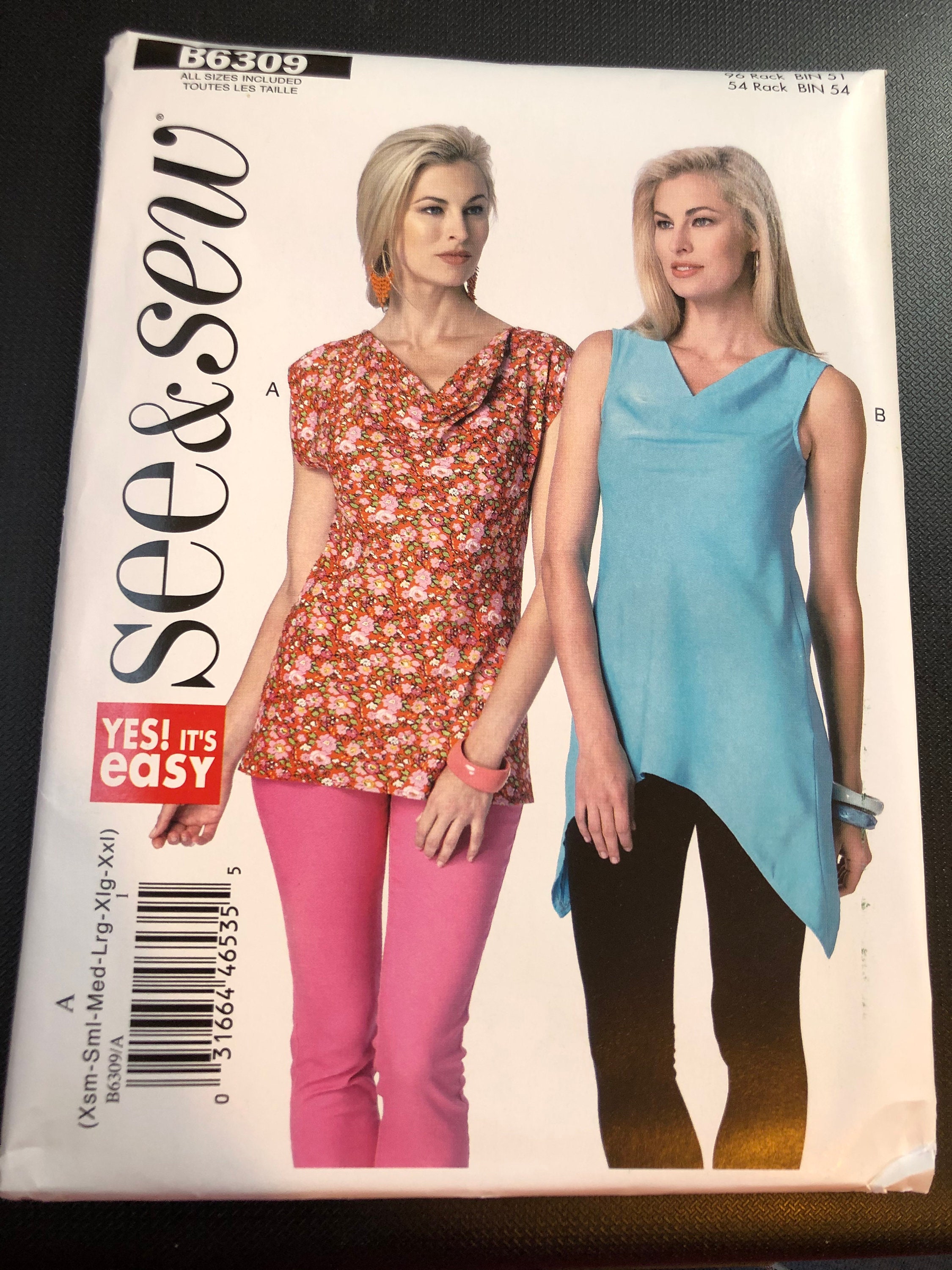 Butterick Pattern B6309 Ms See Sew Pullover Tops W Draped Etsy