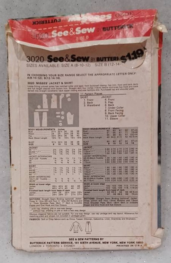 Butterick Sewing Pattern 3020 See And Sew Woman S Jacket Etsy